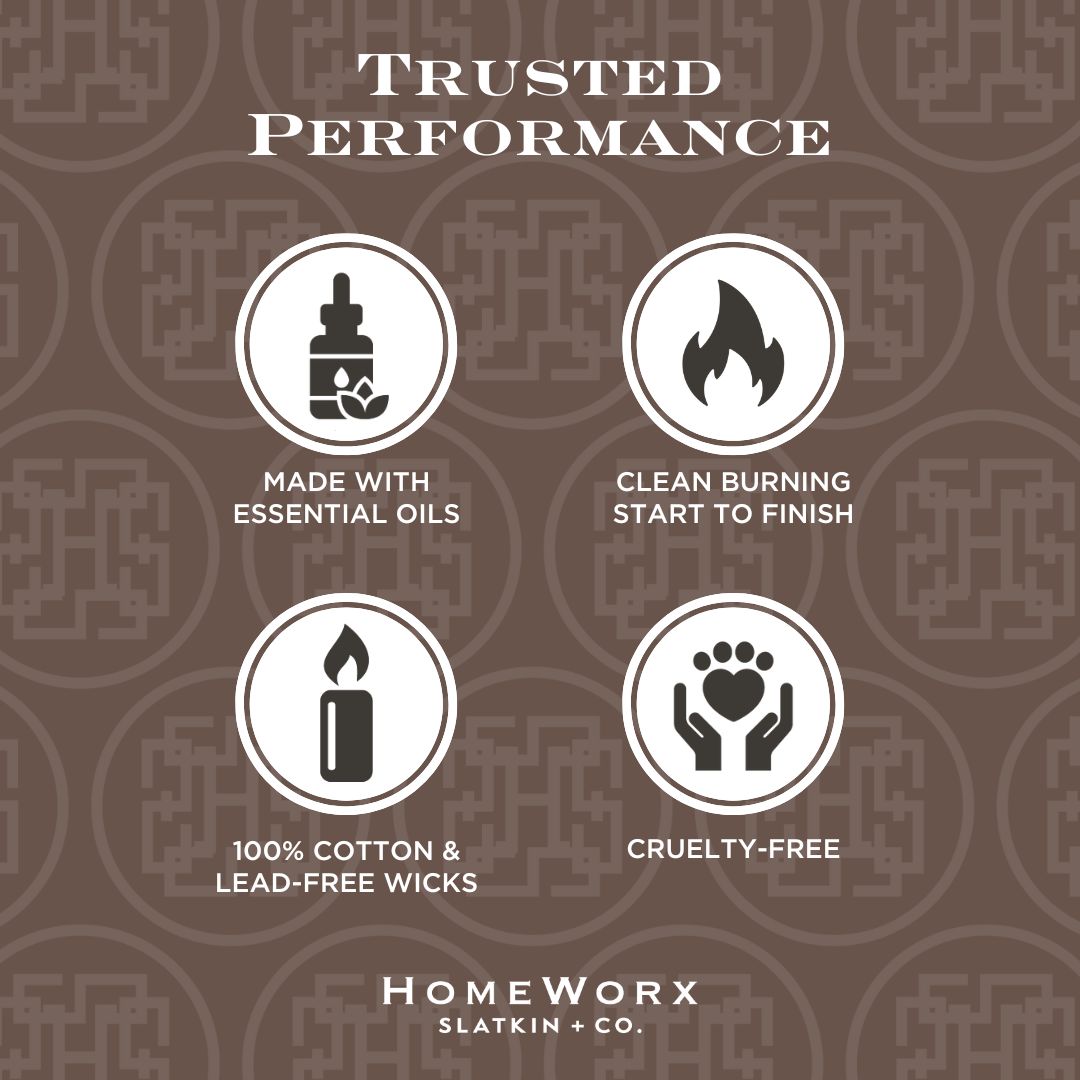 HomeWorx was founded by Harry Slatkin, a talented expert in the industry and deemed the "King of Home Fragrance" by The New York Times. HomeWorx was created to bring a luxury experience into your home. All candles burn clean with lead-free cotton wicks & natural wax blends.