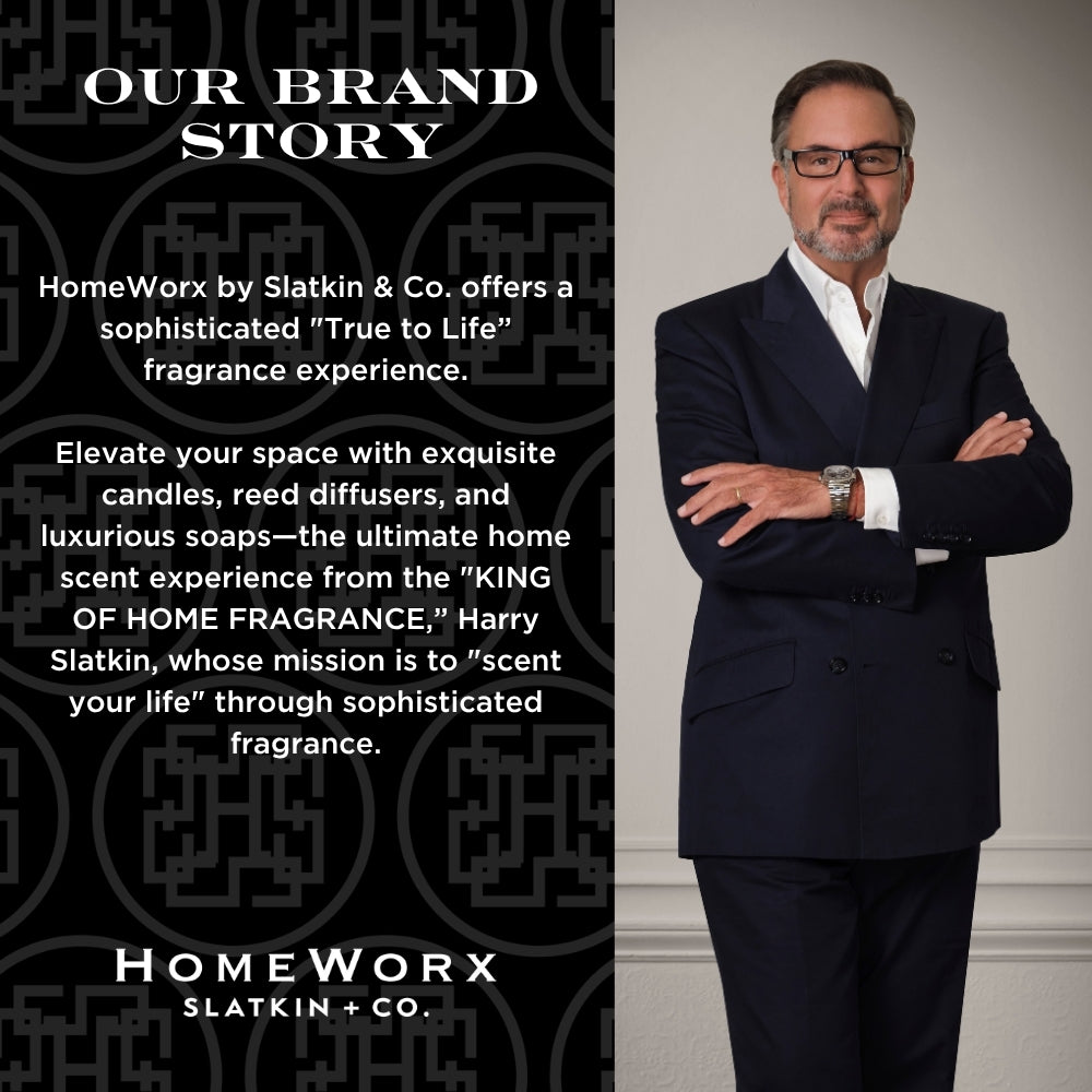 HomeWorx was founded by Harry Slatkin, a talented expert in the industry and deemed the "King of Home Fragrance" by The New York Times. HomeWorx was created to bring a luxury experience into your home. All candles burn clean with lead-free cotton wicks & natural wax blends.